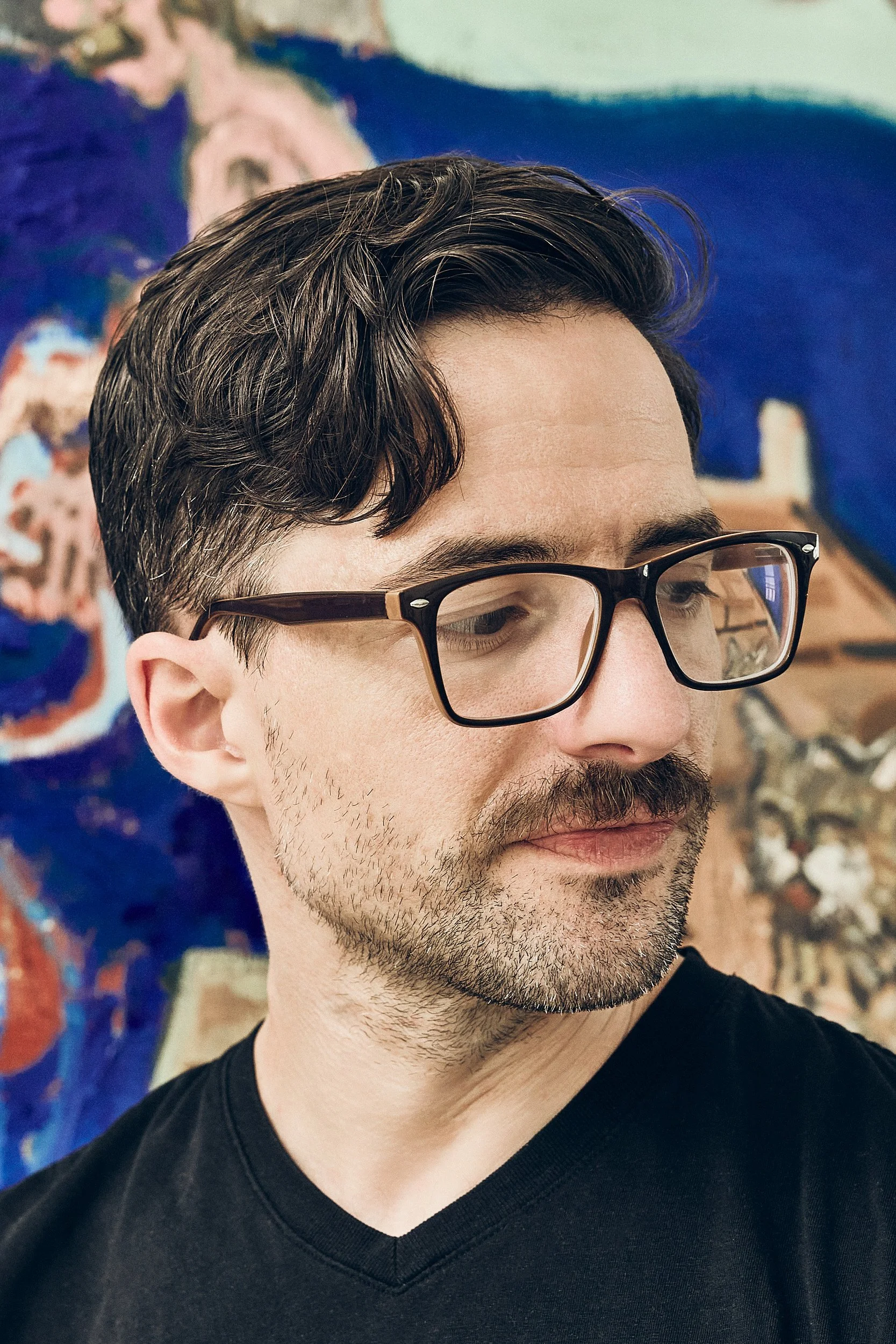 In recent years, Schein has moved away from extensive preparatory sketches toward a more intuitive process, allowing the act of painting itself to determine each composition. He received his BFA from the State University of New York – Purchase College in 2008 and his MFA from the Tyler School of Art in Philadelphia in 2011.